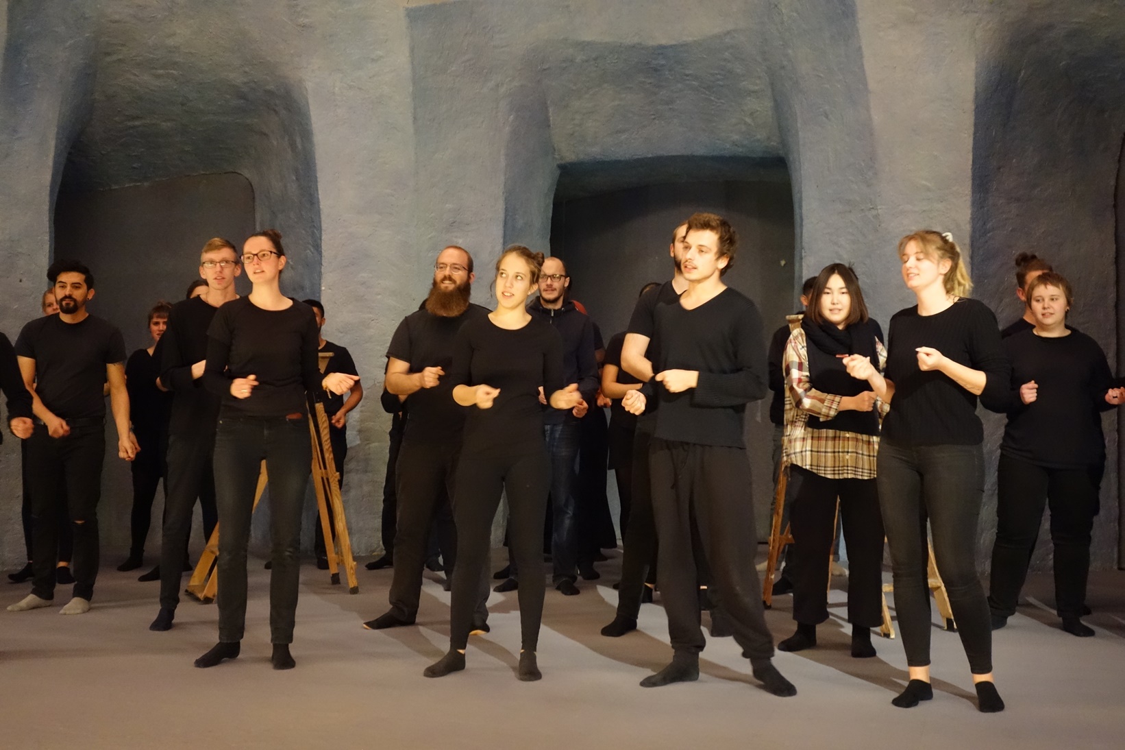 Kindheits- und Jugenderinnerungen an besondere Wettersituationen waren der Beginn unserer Werkstattpräsentation „Die Regentrude“ am Freitagmorgen, 15.11.2019 in der Camphill Schulgemeinschaft Föhrenbühl. Die 32 Seminarteilnehmenden des ersten Jahres Blockkurs Heilerziehungspflege hatten sich am ersten Probentag über extreme Wettererlebnisse gegenseitig interviewt. Spannende Erlebnisse waren darunter, nämlich dass Stürme die Dächer von Häusern wegfliegen ließen, dass Gewitter und Blitze als Kind Angst erzeugten, dass bei großer Hitze in den Flüssen die Fische starben. Von diesen Dürrezeiten handelt auch das Märchen "Die Regentrude". Obwohl Theodor Storm es schon 1863 geschrieben hat, bekommt es angesichts unseres heutigen Klimawandels einen sehr aktuellen Zeitbezug.