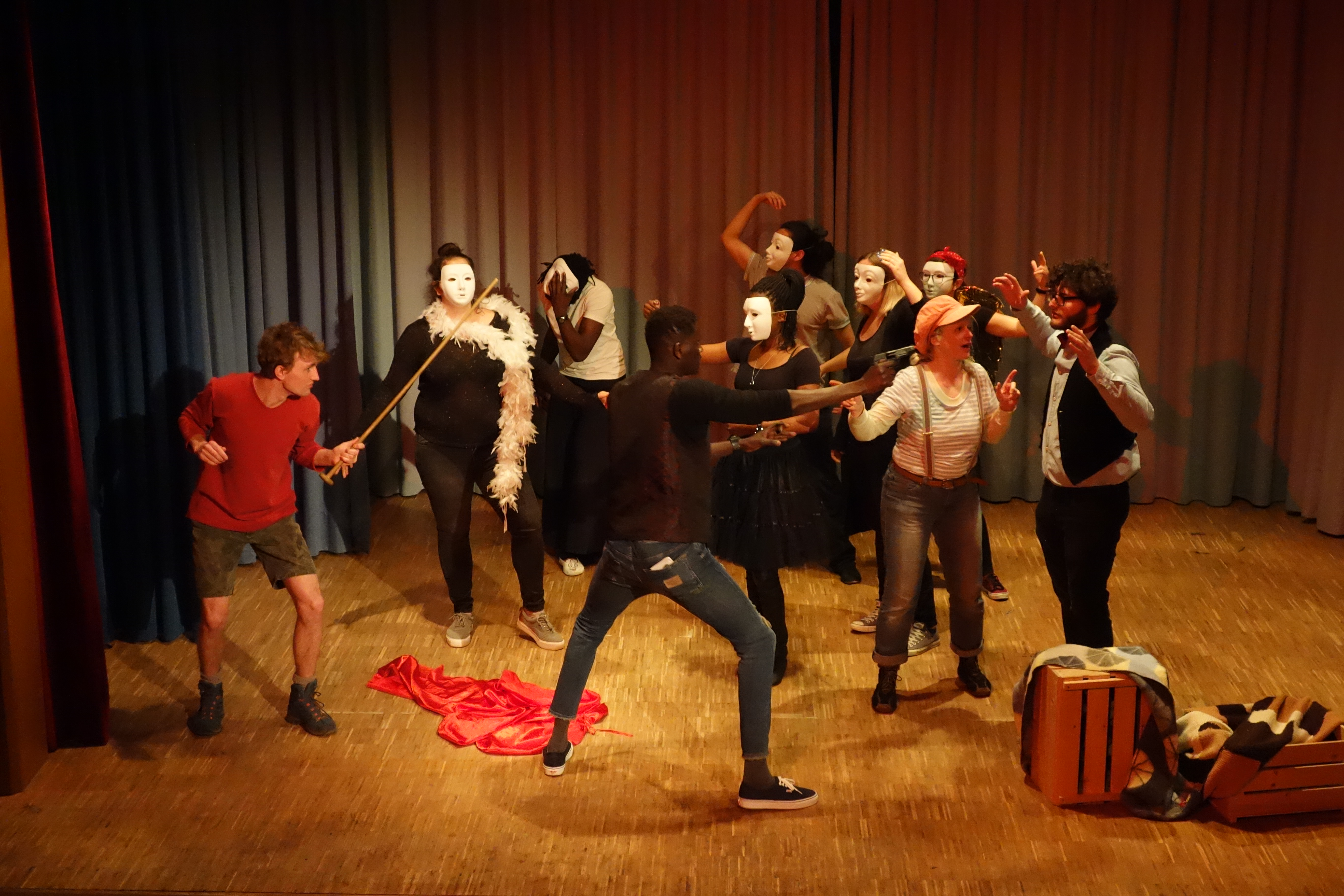 Mit großer Präsenz, Spielfreude und Intensität probten und improvisierten die Seminaristinnen und Seminaristen in nur vier Tagen unter der Begleitung von Beate Krützkamp und Christina Motsch das Stück ein.