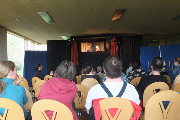 Frickingen, 17. April 2015. „Seid ihr auch alle da?“ ruft der Kasper und erhält lautstarke Bestätigung aus dem Publikum. Der große Saal im Schulgebäude der Camphill Ausbildungen gGmbH ist heute zum Puppentheater umfunktioniert. Viele Zuschauer, zum Beispiel aus dem Kindergarten und der Grundschule Frickingen und den verschiedenen Camphill-Einrichtungen, haben sich eingefunden.