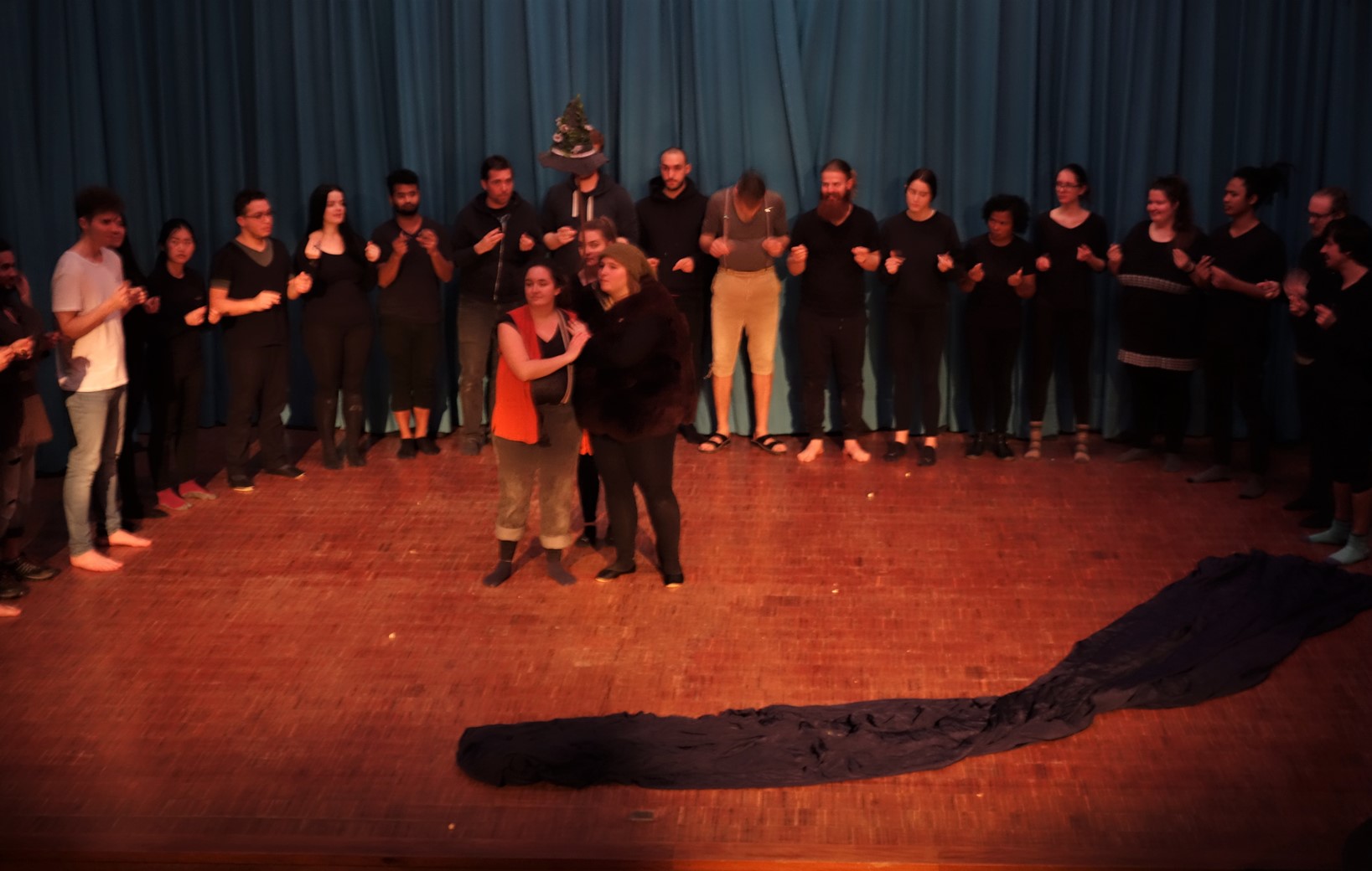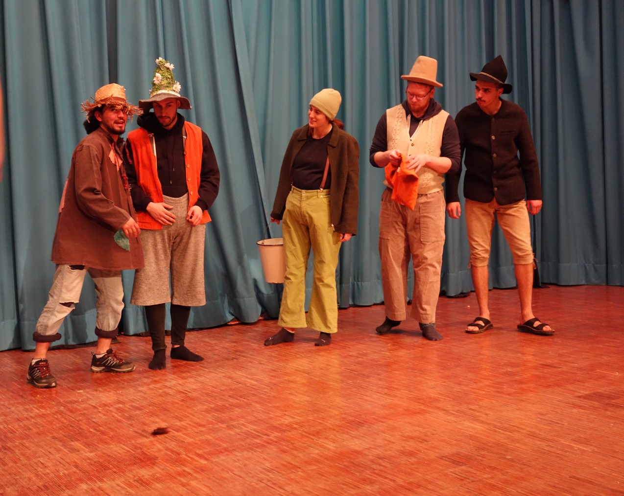 In nur vier Tagen studierten Magdalena Scharler und Beate Krützkamp das Kinderstück mit den 24 Seminarteilnehmenden des Blockkurses ein. Dass am Ende ein so starkes Ensemblegefühl gewachsen ist und alle für- und miteinander auf und hinter der Bühne die Konzentration hielten, war ein besonderes Geschenk dieser Blockwoche.