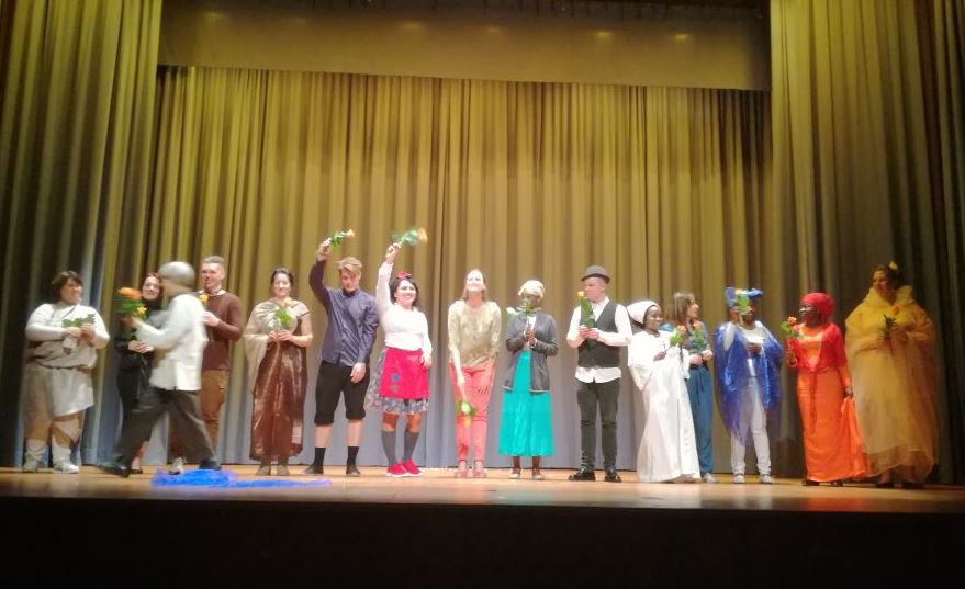 Innerhalb weniger Tage studierten die Lernenden unter der Regie von Susanne Knyrim das Theaterstück, das auf dem Märchenspiel von Maurice Maeterlinck basiert, ein. Für die meisten der Teilnehmenden war es das erste Mal, dass sie überhaupt Theater spielend auf einer Bühne standen. Dennoch nahmen Sie die Herausforderung an — alle 14 Lernenden war in der Intensivwoche engagiert an der Stückentwicklung und der eigenen Rollengestaltung beteiligt.