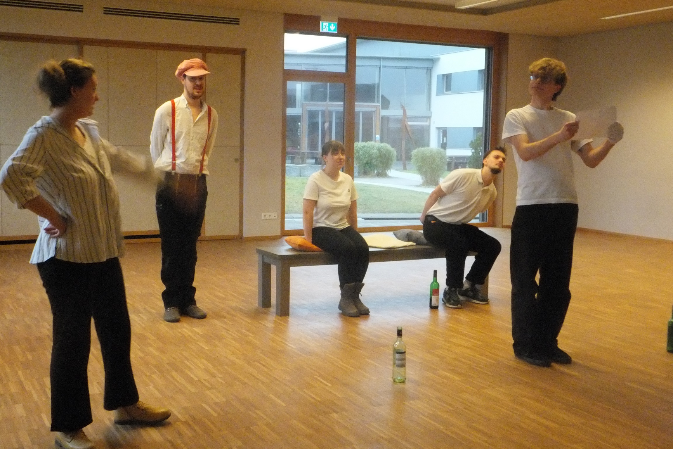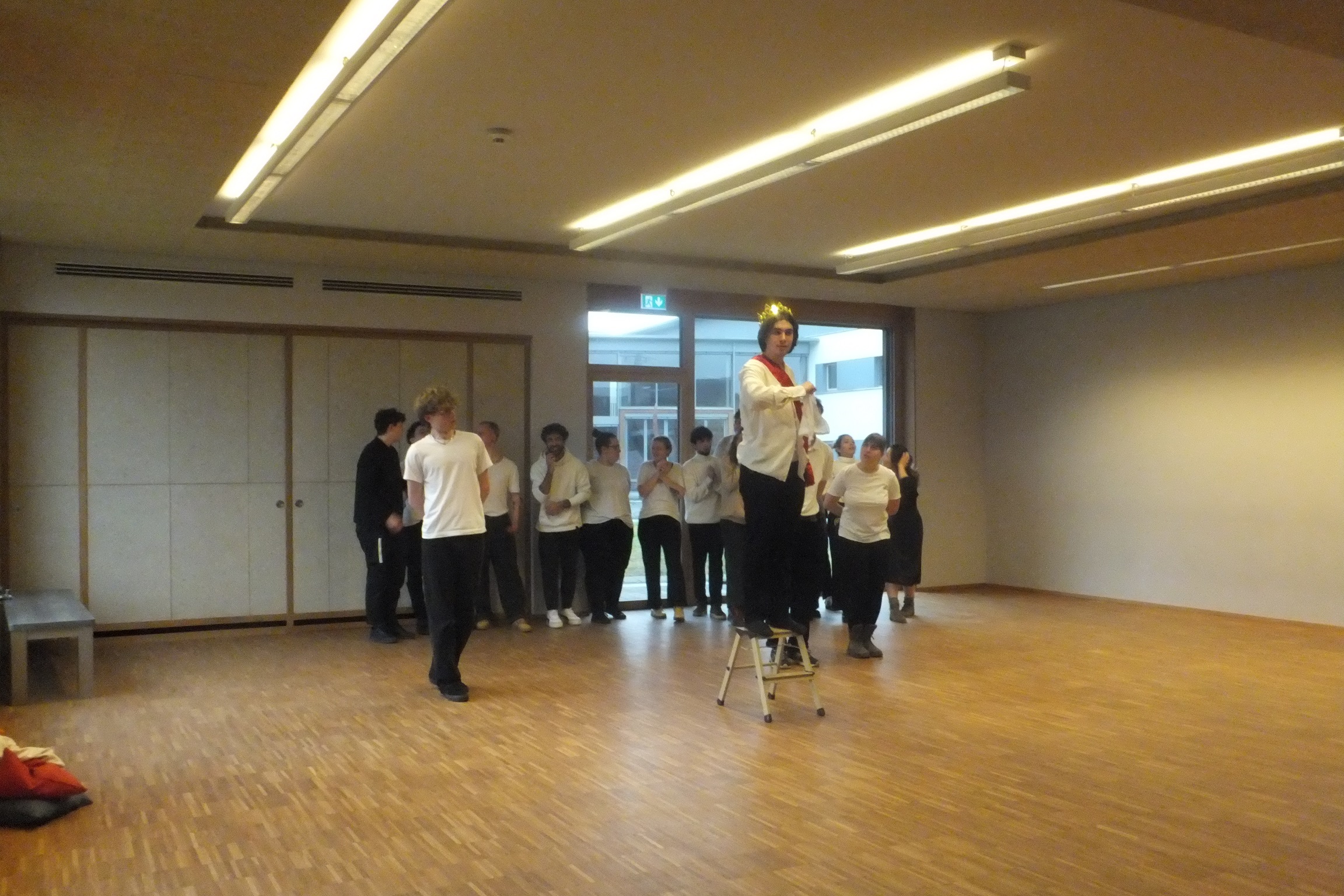 Am nächsten Morgen um 10 Uhr gab es im Seminargebäude der Camphill Ausbildungen für Mitarbeitende und Kursteilnehmende die zweite Aufführung. Den Schauspielenden gelang es dabei, das Publikum sowohl mit humorvollen Szenen zum Lachen zu bringen, als auch mit ruhigeren Dialogen in die Geschichte einzutauchen. Die nicht ganz einfach zu lernenden Texte von Georg Büchner und viele Szenenwechsel ließen nicht merken, dass die Darstellenden nur knapp vier Tage für die Proben zur Verfügung hatten. So gab es auch nach der zweiten Aufführung im Seminargebäude den verdienten großen Applaus.