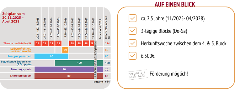 Die Weiterbildung vermittelt systemische Inhalte, Methoden und kreative Praxisinterventionen. Konkretes systemisches Interventionshandeln wird für ein breites Spektrum der Jugendhilfe, Eingliederungshilfe, Altenhilfe/Pflege und andere Arbeitsfelder geschult. Voraussetzung ist ein Tätigkeitsfeld, in dem systemische Beratung praktisch umgesetzt werden kann.